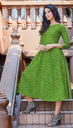 Fashion Mania Women’s Stitched Cotton Printed Flared Kurti Green XXL